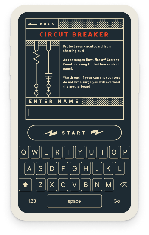 Custom built Circuit Breaker game with high score tracking and a shared leaderboard.