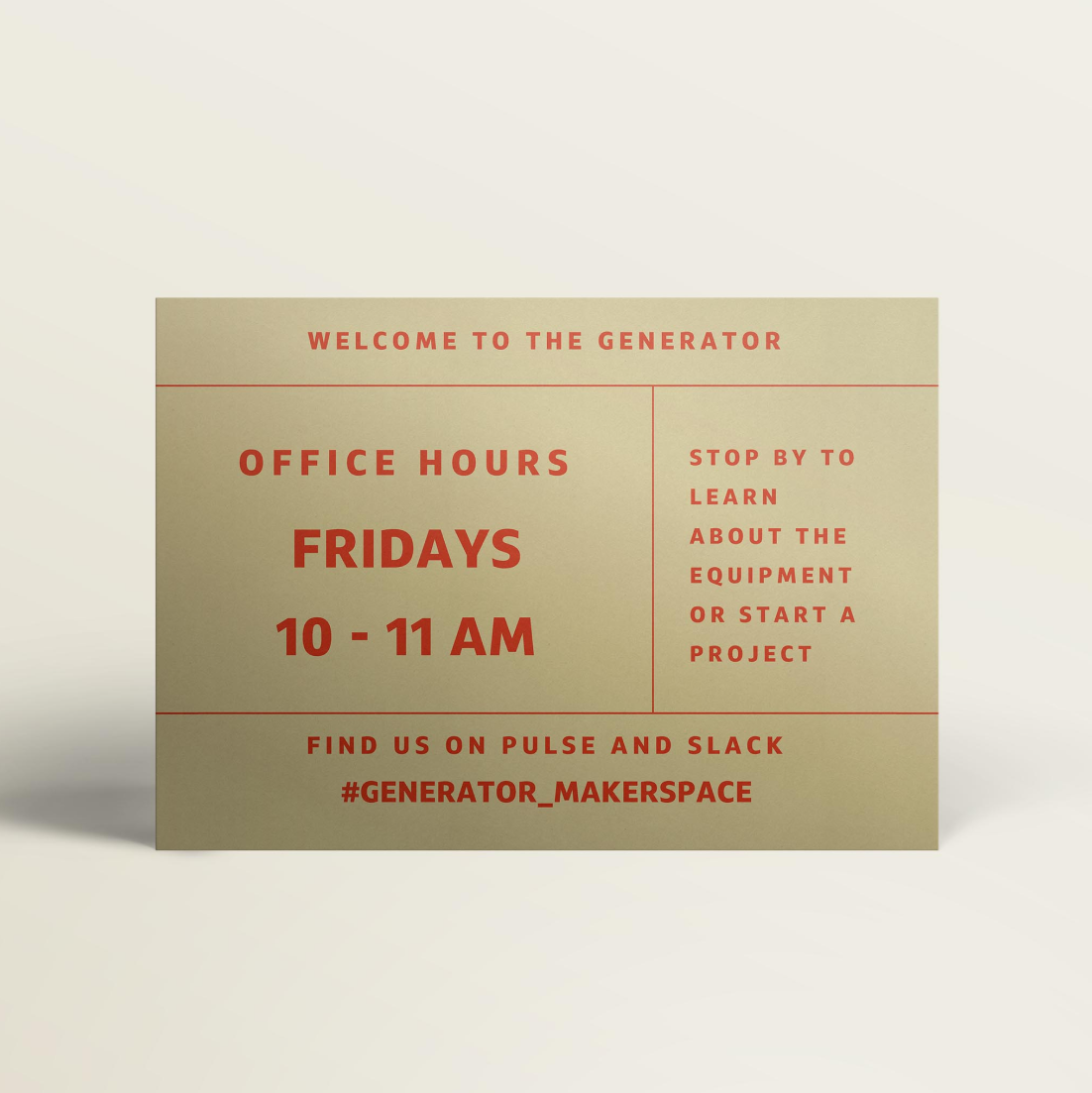 Principles handout provides information about the space and signage provides a schedule for office hours.