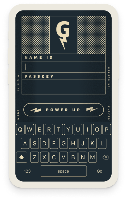 Splash and login page with custom keyboard. A Circuit Breaker game is launched as an easter egg when the user taps on the Generator logo.