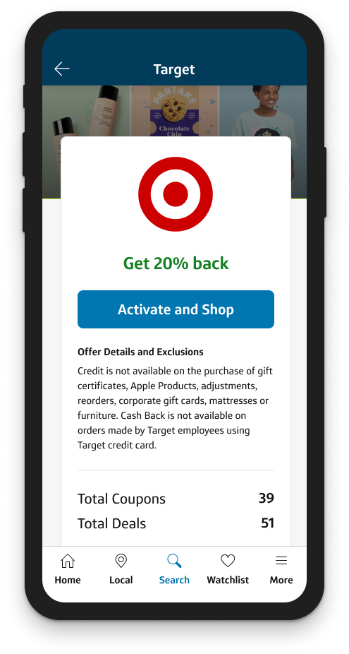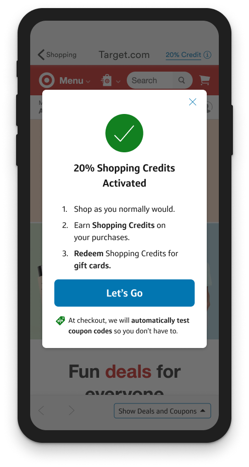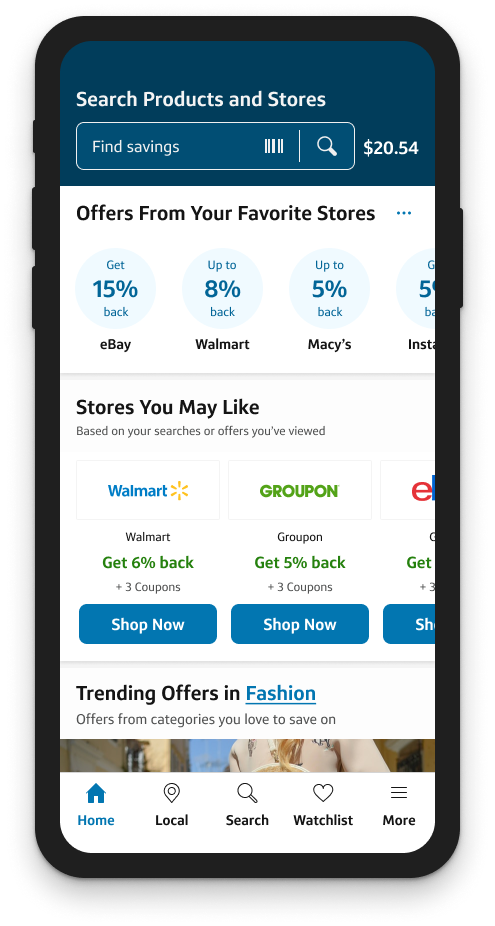 My team and I designed a new custom webview shopping experience that kept users within the app in order to provide additional tools while they shopped, helping them save money and find the best deals.