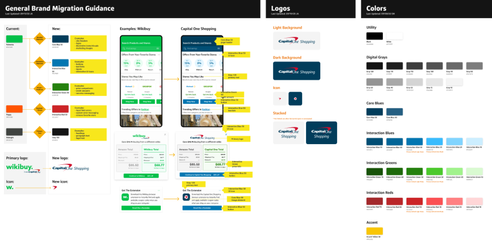 We developed brand migration guidelines and a comprehensive design system to be used by multiple development, marketing, and external agency teams during the rebrand of Wikibuy to Capital One Shopping.